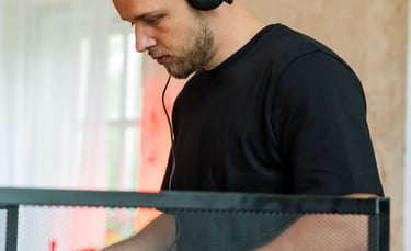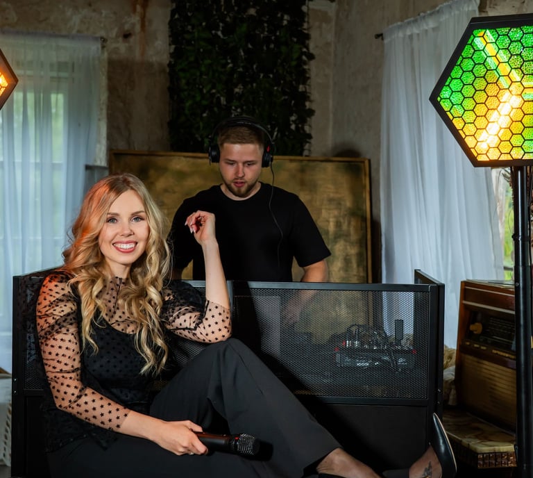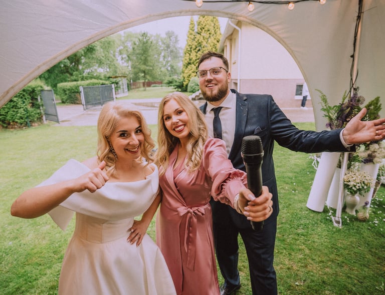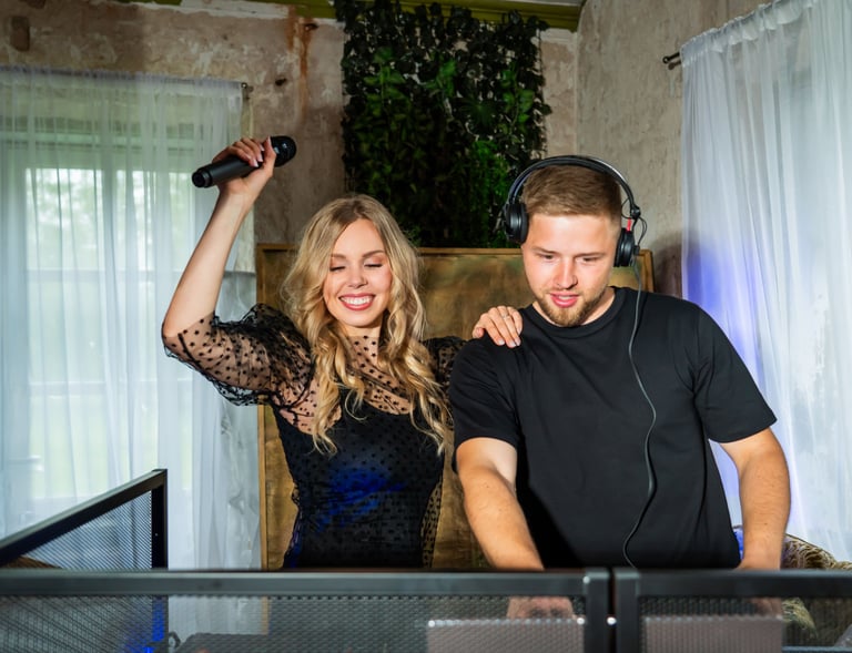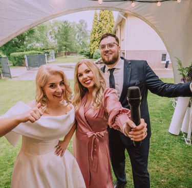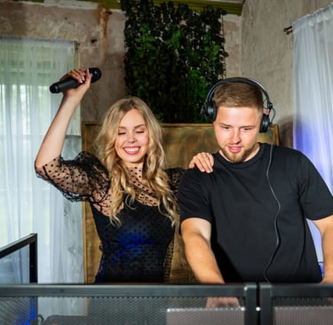 Šalia manęs – kolega Tomas, technikos ir muzikos profesionalas. Jis pasirūpina ne tik nepriekaištinga muzika, bet ir tuo, kad šventėje netrūktų energijos, ritmo ir šokių. Tomas jaučia publiką, reaguoja į nuotaiką ir kuria atmosferą, kurioje kojos pačios ima judėti. Su juo – šventė skamba taip, kaip turi skambėti tikra šventė.